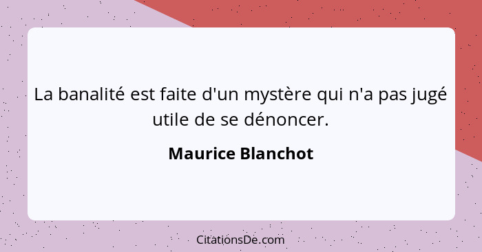 La banalité est faite d'un mystère qui n'a pas jugé utile de se dénoncer.