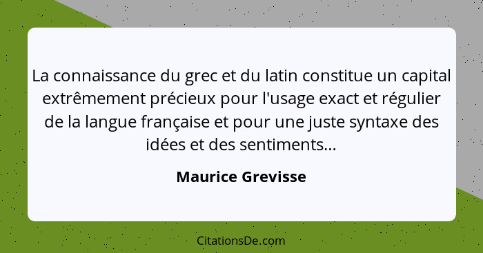 La connaissance du grec et du latin constitue un capital extrêmement précieux pour l'usage exact et régulier de la langue française et pour une juste syntaxe des idées et des sentiments…