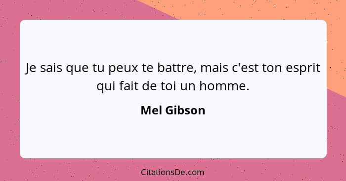 Je sais que tu peux te battre, mais c'est ton esprit qui fait de toi un homme.
