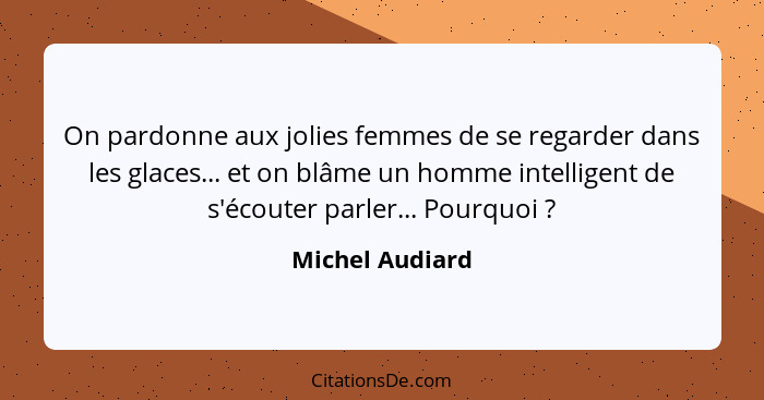 On pardonne aux jolies femmes de se regarder dans les glaces... et on blâme un homme intelligent de s'écouter parler... Pourquoi ?
