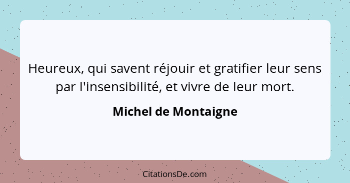 Heureux, qui savent réjouir et gratifier leur sens par l'insensibilité, et vivre de leur mort.