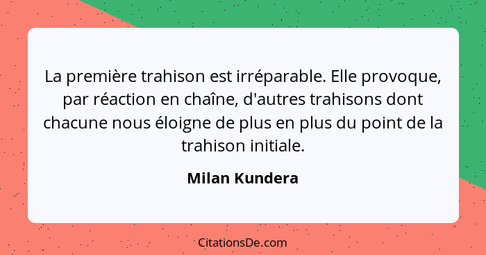 La première trahison est irréparable. Elle provoque, par réaction en chaîne, d'autres trahisons dont chacune nous éloigne de plus en plus du point de la trahison initiale.