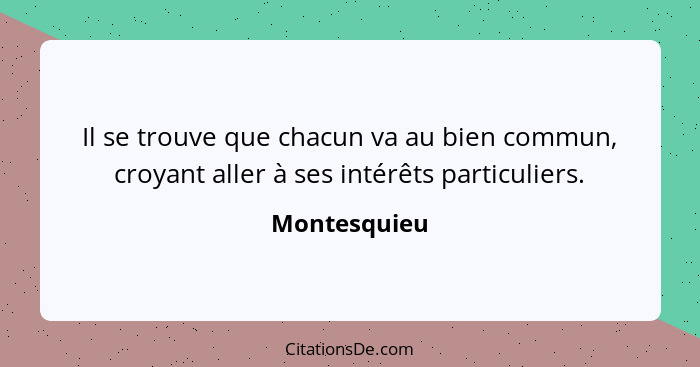 Il se trouve que chacun va au bien commun, croyant aller à ses intérêts particuliers.