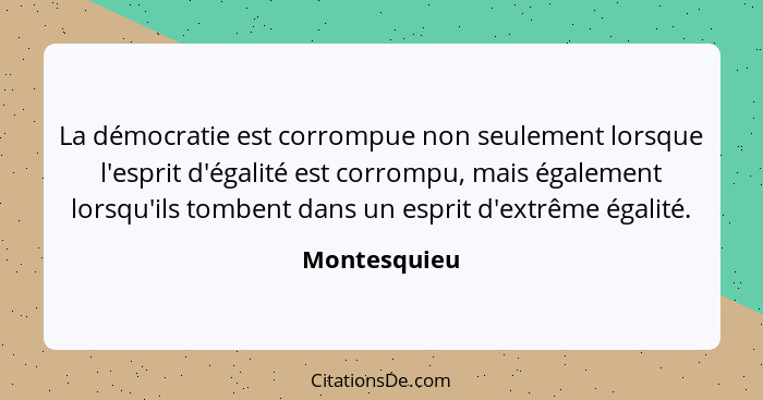 La démocratie est corrompue non seulement lorsque l'esprit d'égalité est corrompu, mais également lorsqu'ils tombent dans un esprit d'extrême égalité.