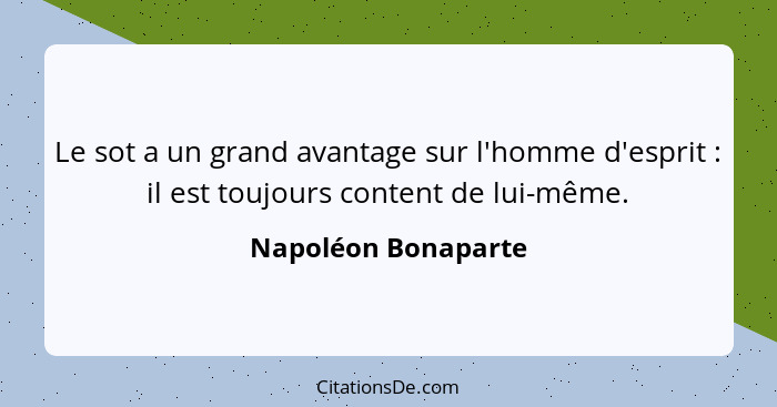 Le sot a un grand avantage sur l'homme d'esprit : il est toujours content de lui-même.
