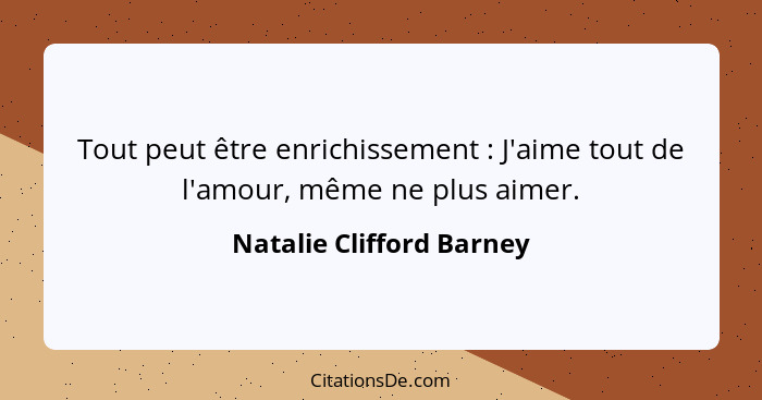 Tout peut être enrichissement : J'aime tout de l'amour, même ne plus aimer.