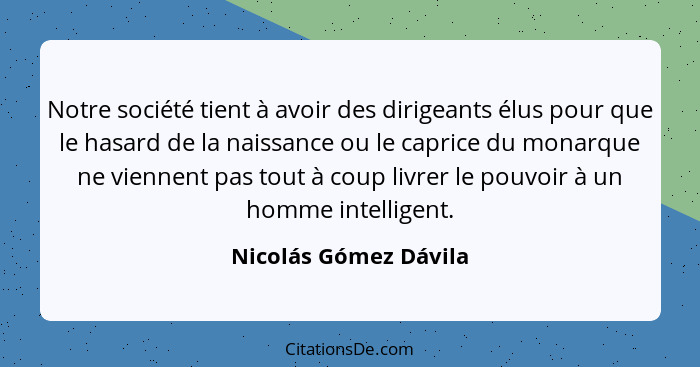 Notre société tient à avoir des dirigeants élus pour que le hasard de la naissance ou le caprice du monarque ne viennent pas tout à coup livrer le pouvoir à un homme intelligent.