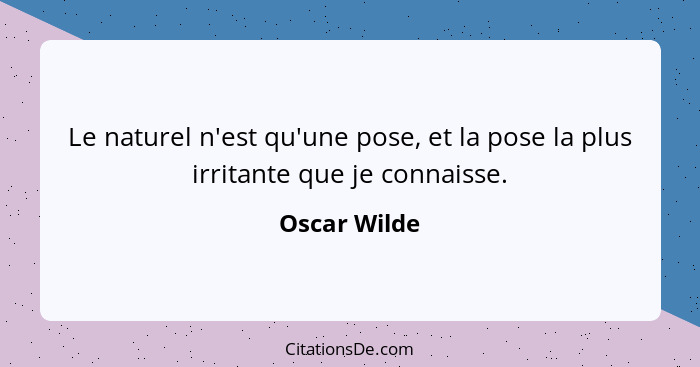 Le naturel n'est qu'une pose, et la pose la plus irritante que je connaisse.