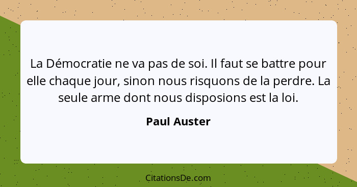La Démocratie ne va pas de soi. Il faut se battre pour elle chaque jour, sinon nous risquons de la perdre. La seule arme dont nous disposions est la loi.