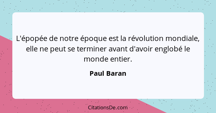 L'épopée de notre époque est la révolution mondiale, elle ne peut se terminer avant d'avoir englobé le monde entier.