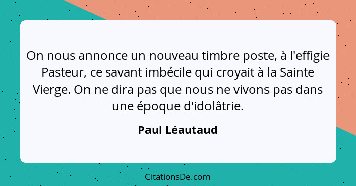 On nous annonce un nouveau timbre poste, à l'effigie Pasteur, ce savant imbécile qui croyait à la Sainte Vierge. On ne dira pas que nous ne vivons pas dans une époque d'idolâtrie.