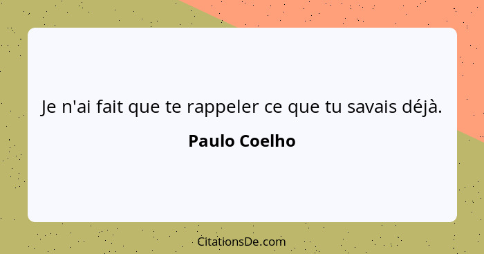 Je n'ai fait que te rappeler ce que tu savais déjà.