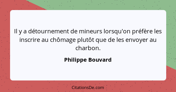Il y a détournement de mineurs lorsqu'on préfère les inscrire au chômage plutôt que de les envoyer au charbon.