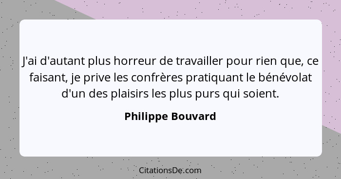 J'ai d'autant plus horreur de travailler pour rien que, ce faisant, je prive les confrères pratiquant le bénévolat d'un des plaisirs les plus purs qui soient.