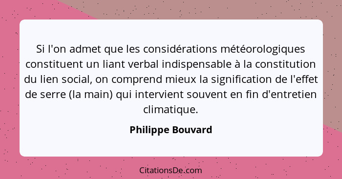 Si l'on admet que les considérations météorologiques constituent un liant verbal indispensable à la constitution du lien social, on comprend mieux la signification de l'effet de serre (la main) qui intervient souvent en fin d'entretien climatique.