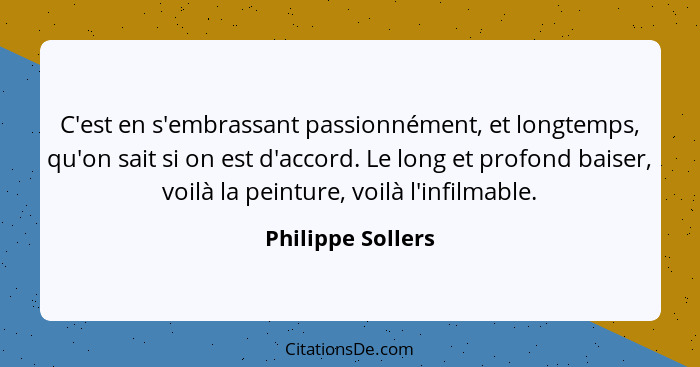 C'est en s'embrassant passionnément, et longtemps, qu'on sait si on est d'accord. Le long et profond baiser, voilà la peinture, voilà l'infilmable.