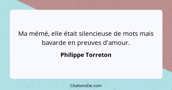 Ma mémé, elle était silencieuse de mots mais bavarde en preuves d'amour.