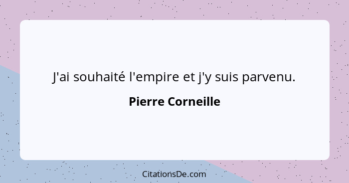J'ai souhaité l'empire et j'y suis parvenu.