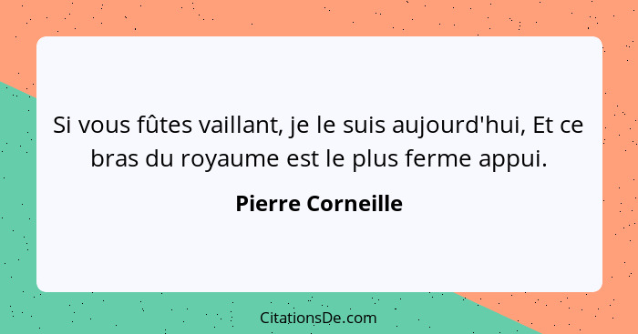 Si vous fûtes vaillant, je le suis aujourd'hui, Et ce bras du royaume est le plus ferme appui.
