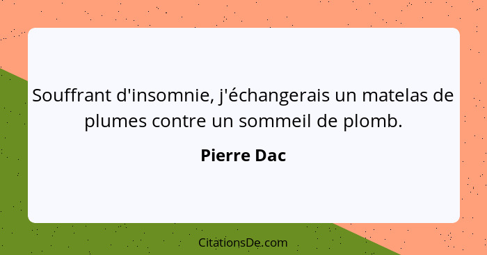 Souffrant d'insomnie, j'échangerais un matelas de plumes contre un sommeil de plomb.