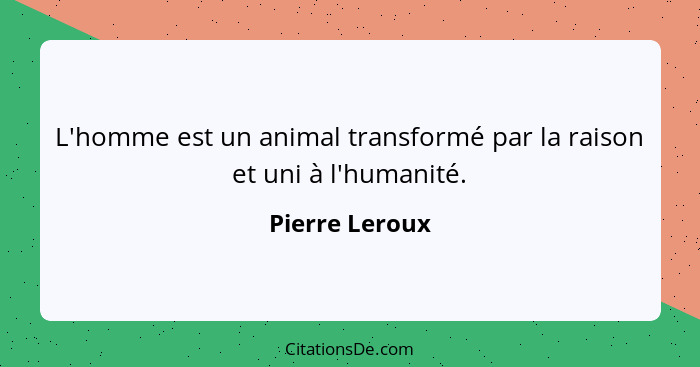 L'homme est un animal transformé par la raison et uni à l'humanité.