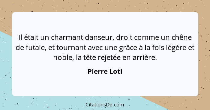 Il était un charmant danseur, droit comme un chêne de futaie, et tournant avec une grâce à la fois légère et noble, la tête rejetée en arrière.
