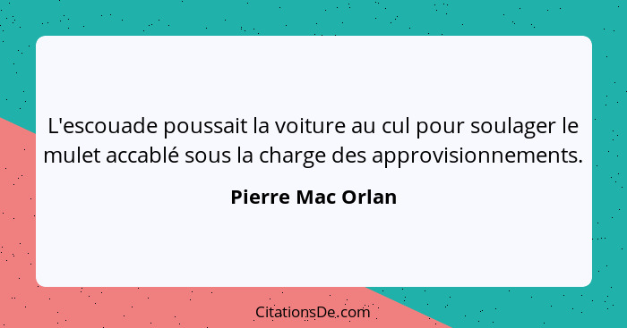 L'escouade poussait la voiture au cul pour soulager le mulet accablé sous la charge des approvisionnements.