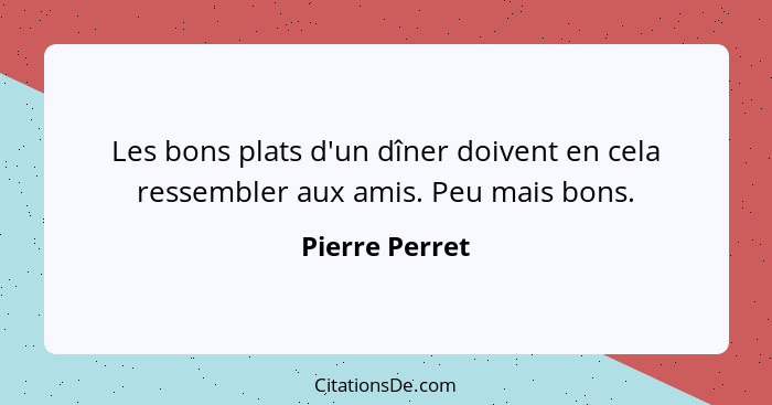 Les bons plats d'un dîner doivent en cela ressembler aux amis. Peu mais bons.