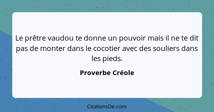 Le prêtre vaudou te donne un pouvoir mais il ne te dit pas de monter dans le cocotier avec des souliers dans les pieds.