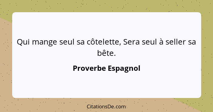 Qui mange seul sa côtelette, Sera seul à seller sa bête.