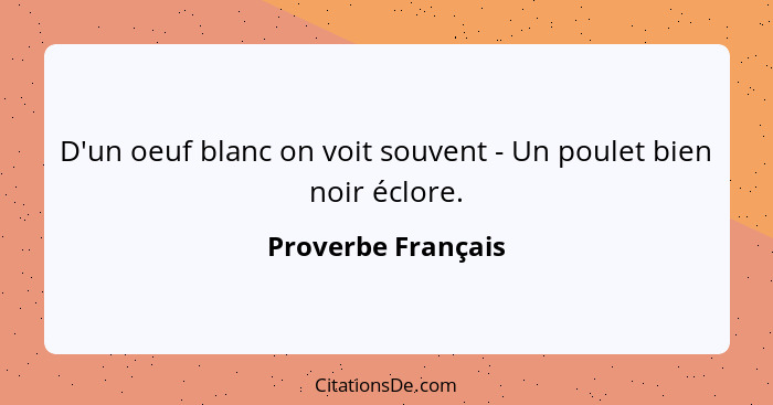 D'un oeuf blanc on voit souvent - Un poulet bien noir éclore.