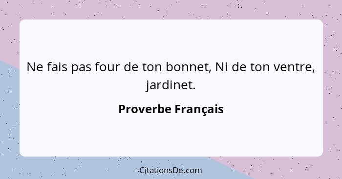 Ne fais pas four de ton bonnet, Ni de ton ventre, jardinet.