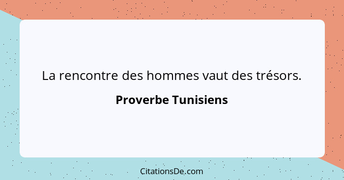 La rencontre des hommes vaut des trésors.