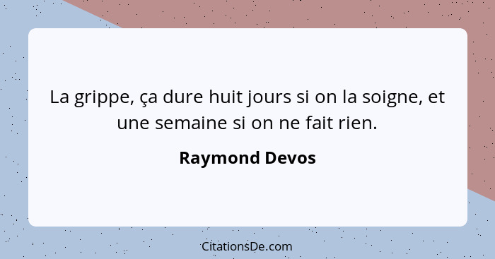 La grippe, ça dure huit jours si on la soigne, et une semaine si on ne fait rien.