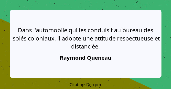 Dans l'automobile qui les conduisit au bureau des isolés coloniaux, il adopte une attitude respectueuse et distanciée.