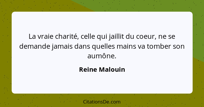 La vraie charité, celle qui jaillit du coeur, ne se demande jamais dans quelles mains va tomber son aumône.