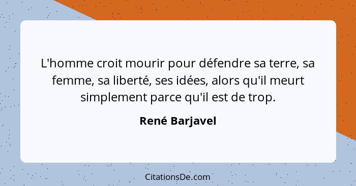 L'homme croit mourir pour défendre sa terre, sa femme, sa liberté, ses idées, alors qu'il meurt simplement parce qu'il est de trop.