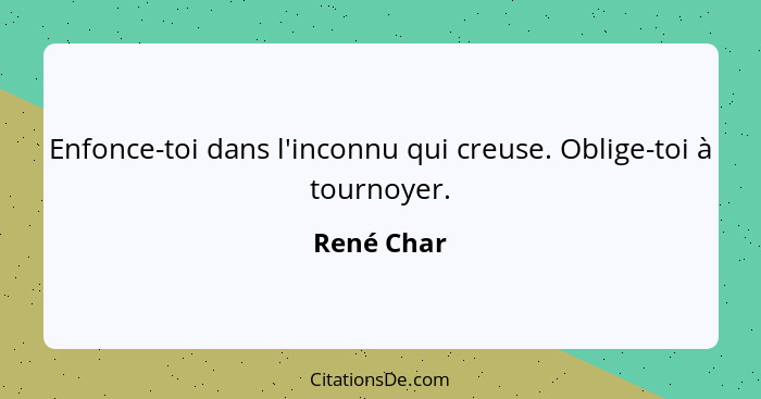 Enfonce-toi dans l'inconnu qui creuse. Oblige-toi à tournoyer.