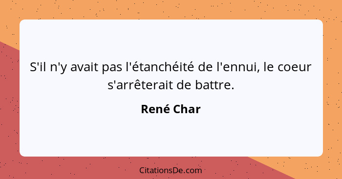 S'il n'y avait pas l'étanchéité de l'ennui, le coeur s'arrêterait de battre.