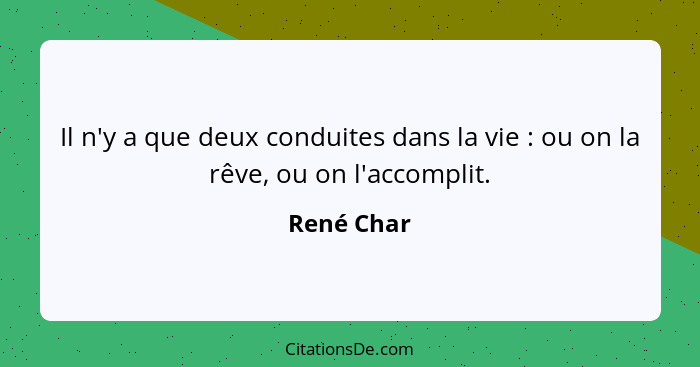 Il n'y a que deux conduites dans la vie : ou on la rêve, ou on l'accomplit.