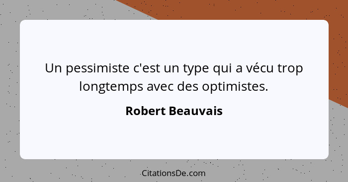 Un pessimiste c'est un type qui a vécu trop longtemps avec des optimistes.