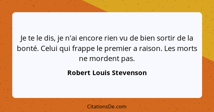 Je te le dis, je n'ai encore rien vu de bien sortir de la bonté. Celui qui frappe le premier a raison. Les morts ne mordent pas.