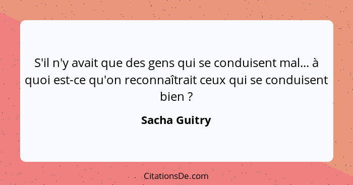 S'il n'y avait que des gens qui se conduisent mal... à quoi est-ce qu'on reconnaîtrait ceux qui se conduisent bien ?