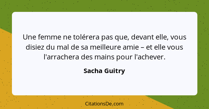 Une femme ne tolérera pas que, devant elle, vous disiez du mal de sa meilleure amie – et elle vous l'arrachera des mains pour l'achever.