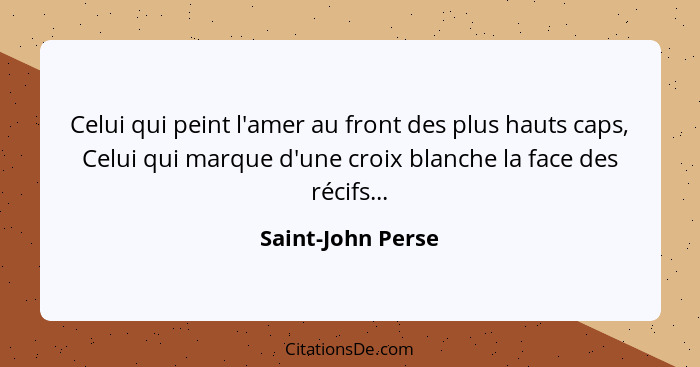 Celui qui peint l'amer au front des plus hauts caps, Celui qui marque d'une croix blanche la face des récifs...