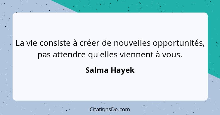 La vie consiste à créer de nouvelles opportunités, pas attendre qu'elles viennent à vous.