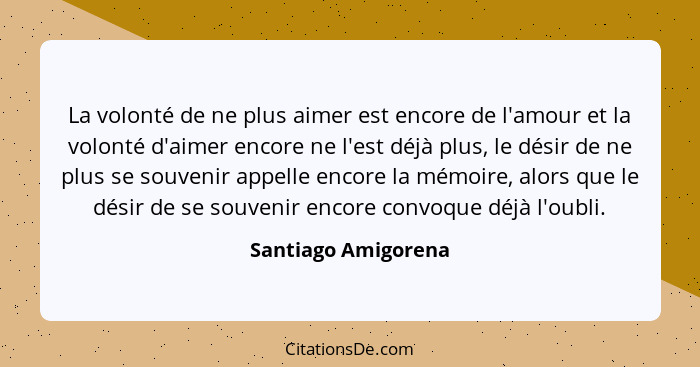 La volonté de ne plus aimer est encore de l'amour et la volonté d'aimer encore ne l'est déjà plus, le désir de ne plus se souvenir appelle encore la mémoire, alors que le désir de se souvenir encore convoque déjà l'oubli.