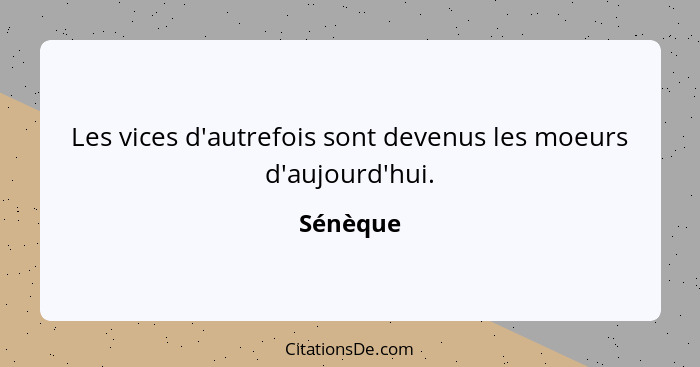 Les vices d'autrefois sont devenus les moeurs d'aujourd'hui.
