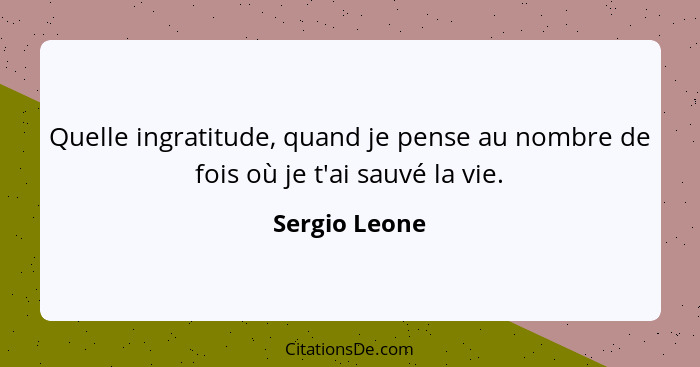Quelle ingratitude, quand je pense au nombre de fois où je t'ai sauvé la vie.