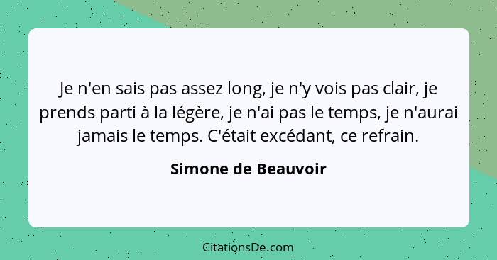 Je n'en sais pas assez long, je n'y vois pas clair, je prends parti à la légère, je n'ai pas le temps, je n'aurai jamais le temps. C'était excédant, ce refrain.
